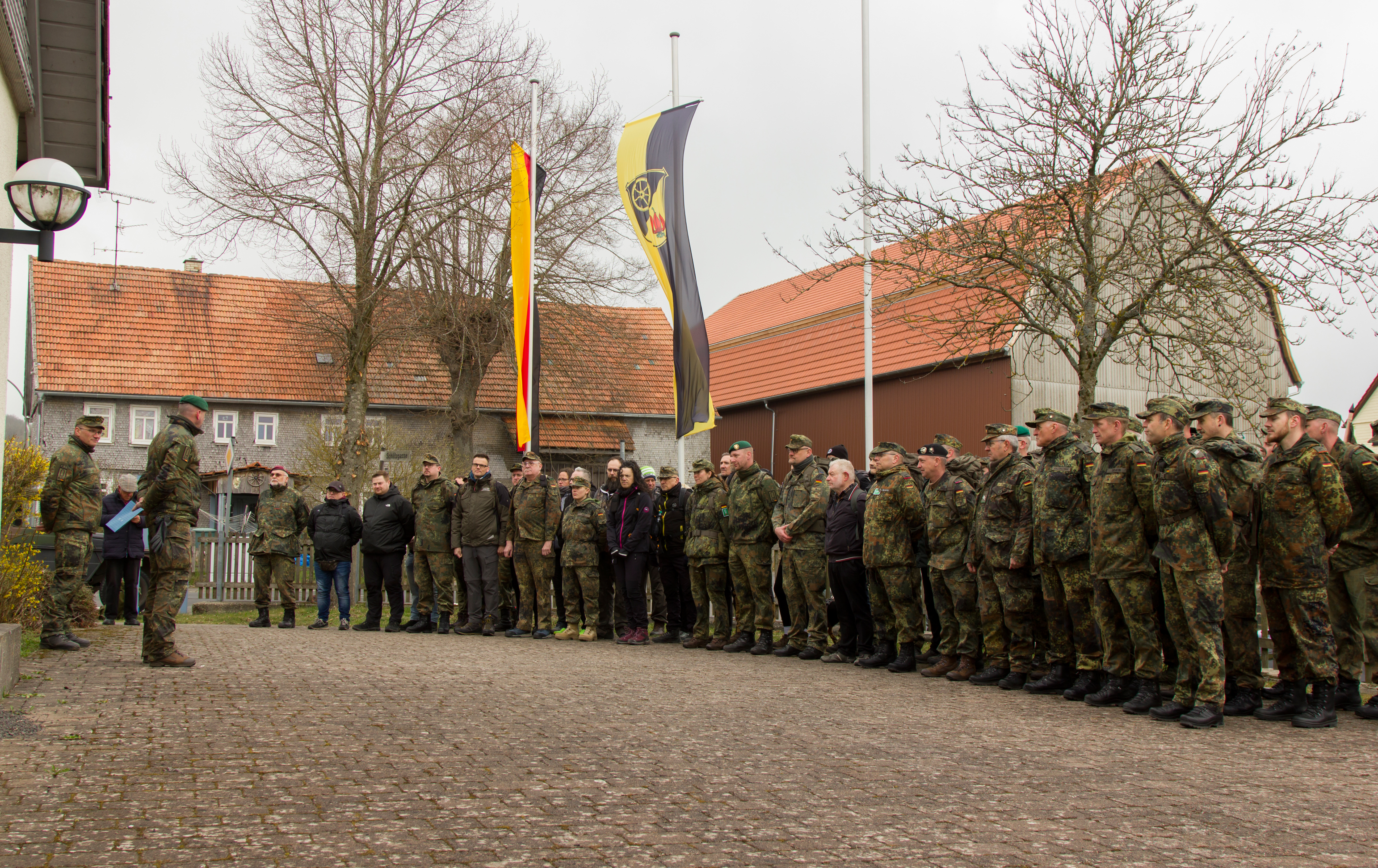 Vor dem Marsch traten die über 70 Teilnehmer und Teilnehmerinnen am Gemeinschaftshaus Hopfmannsfeld an, wo sie von den Stabsunteroffizieren der Reserve Michael Greff und Mark Nemeti begrüßt wurden.