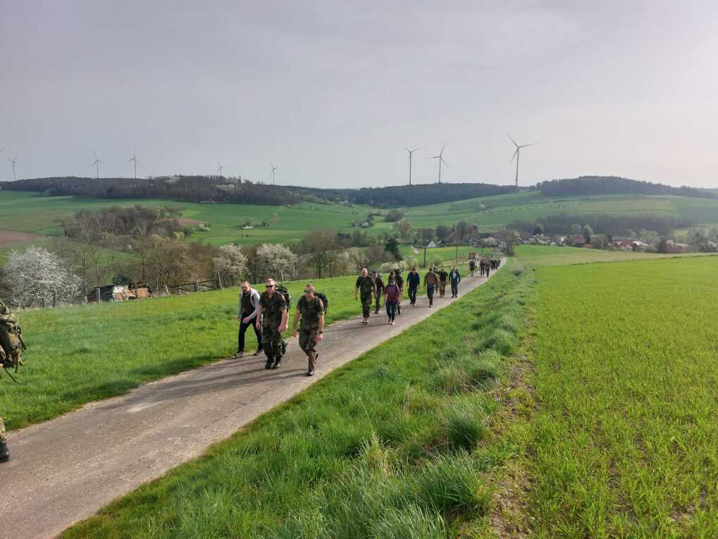 Vogelsbergkreis (gs) Seit dem Jahr 2020 sind Anfang April viele Menschen , überwiegend Soldatinnen, Soldaten, Reservistinnen und Reservisten, auf einem Gedenkmarsch. Mit dem 14k3-Marsch soll bundesweit an das " Karfreitagsgefecht " in Afghanistan erinnert werden, bei dem 2010 drei Bundeswehr-Soldaten gefallen waren. Am 2. April 2010 hatten radikalislamische Taliban eine Patrouille in der Region Kundus angegriffen, dabei wurden drei Soldaten getötet und acht verletzt. Seit 2020 begeben sich Soldaten und Reservisten auf eine 14 Kilometer lange Strecke mit 14 Kilogramm Gepäck. Diesmal war auch die Reservistenkameradschaft Lautertal mit dabei. In diesem Jahr erbrachten rund 16050 Teilnehmer an mehr als 100 Orten in ganz Deutschland über 136.000 Euro an Spendenaufkommen durch den Erwerb eines Marschabzeichens. Die RK Lautertal hatte 36 Teilnehmer und Teilnehmerinnen beim Marsch durch Antrittal-Seibelsdorf und um den Antriftsee mobilisiert. Am Ziel boten Mitglieder des Eintracht-Fan-Clubs (EFC) "Katzenberg" Getränke und belegte Brötchen an. Bürgermeister bDietmar Krist, der aktiver Reservist ist, konnted an dem Marsch wegen anderer Verpflichtungen nicht teilnehmen. Er kam jedoch zum Abschluss und versprach, im kommenden Jahr ebenfalls dabei zu sein. Der Spendenmarsch der RK Lautertal war nicht nur eine Gelegenheit, Geld für wichtige Projekte zu sammeln, sondern eine Demonstration des Gemeinschaftsgeistes, der Solidarität sowie ein würdiges Gedenken an die im Karfreitagsgefecht Gefallenen. Ihr Einsatz und ihre Hingabe sind ein inspirierendes Beispiel dafür, wie lokale Gruppen positive Vränderungen bewirken können und wie wichtig es ist, sich für das Wohl anderer einzusetzen, sagte der stellvertretender der RK-Vorsitzender, Stabsunteroffizier der Reserve Michael Greff.
