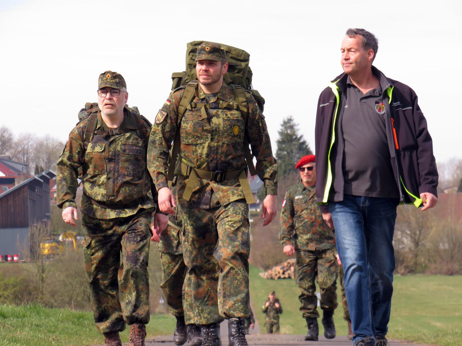 Nach dem Abmarschbefehl wurde es still in den Reihen, als die Marschgruppe die Steigungen des Vogelsbergs nahm. Die 16 Kilogramm Gepäck fungierten als physisches Mahnmal für die Schwere des Schicksals derer, die aus dem Einsatz nicht heimkehrten oder an Leib und Seele verwundet wurden.