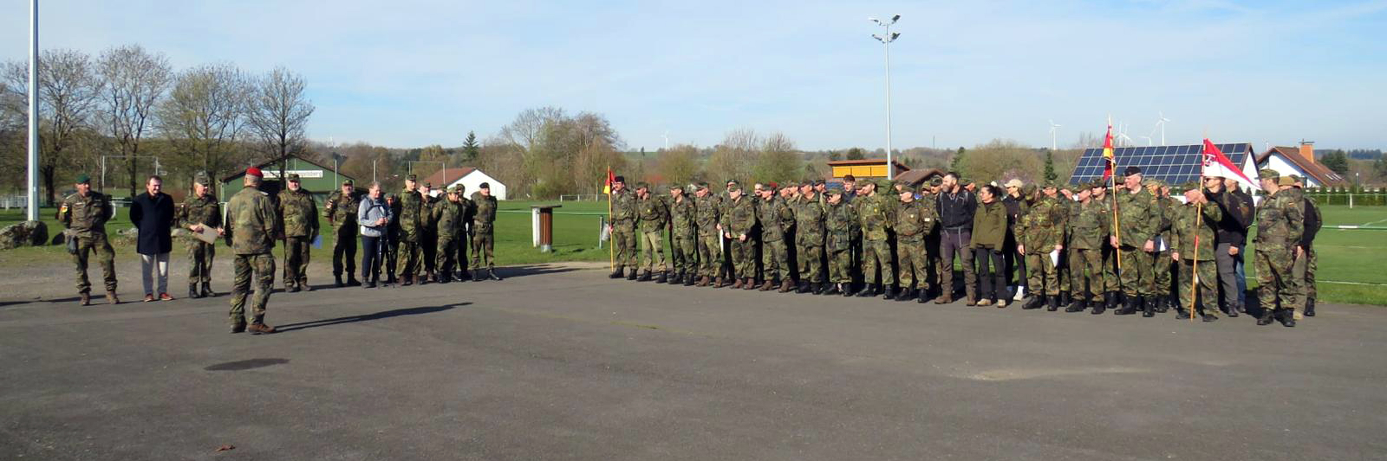 Am Sammelpunkt in Engelrod wurde die Marschbereitschaft unter den Augen hochrangiger Gäste hergestellt. Der Bürgermeister der Gemeinde Lautertal, Lukas Becker, eröffnete die Veranstaltung in seiner Funktion als Schirmherr mit mahnenden Worten. Er betonte, dass dieses Gedenken ein wesentlicher Pfeiler unserer Gesellschaft sei und der Zusammenhalt zwischen zivilen Kräften und Reservisten gerade in fordernden Zeiten unersetzlich bleibt. Auch der Bürgermeister der Gemeinde Antrifttal, Herr Dietmar Krist, erwies den Teilnehmern als besonderer Gast die Ehre und setzte damit ein starkes Zeichen der überregionalen Verbundenheit und Anerkennung für den Dienst an der Gemeinschaft.